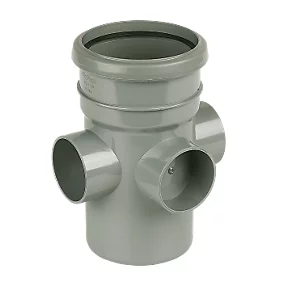 FloPlast Push-Fit 3-Boss Single Socket Boss Pipe Grey 110mm