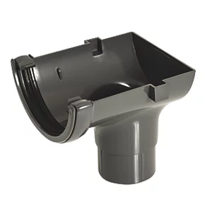 Used to form an outlet connection from half-round gutter to 68mm round downpipe at the end of a guttering run. Fittings include ‘Insert to Here’ marking to allow for correct thermal movement. Fit a gutter fascia bracket within 150mm on all stop end outlets.