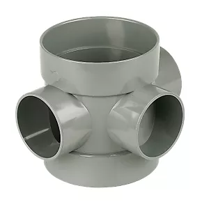 FloPlast Solvent Weld 3-Boss Double Socket Short Boss Pipe Grey 110mm